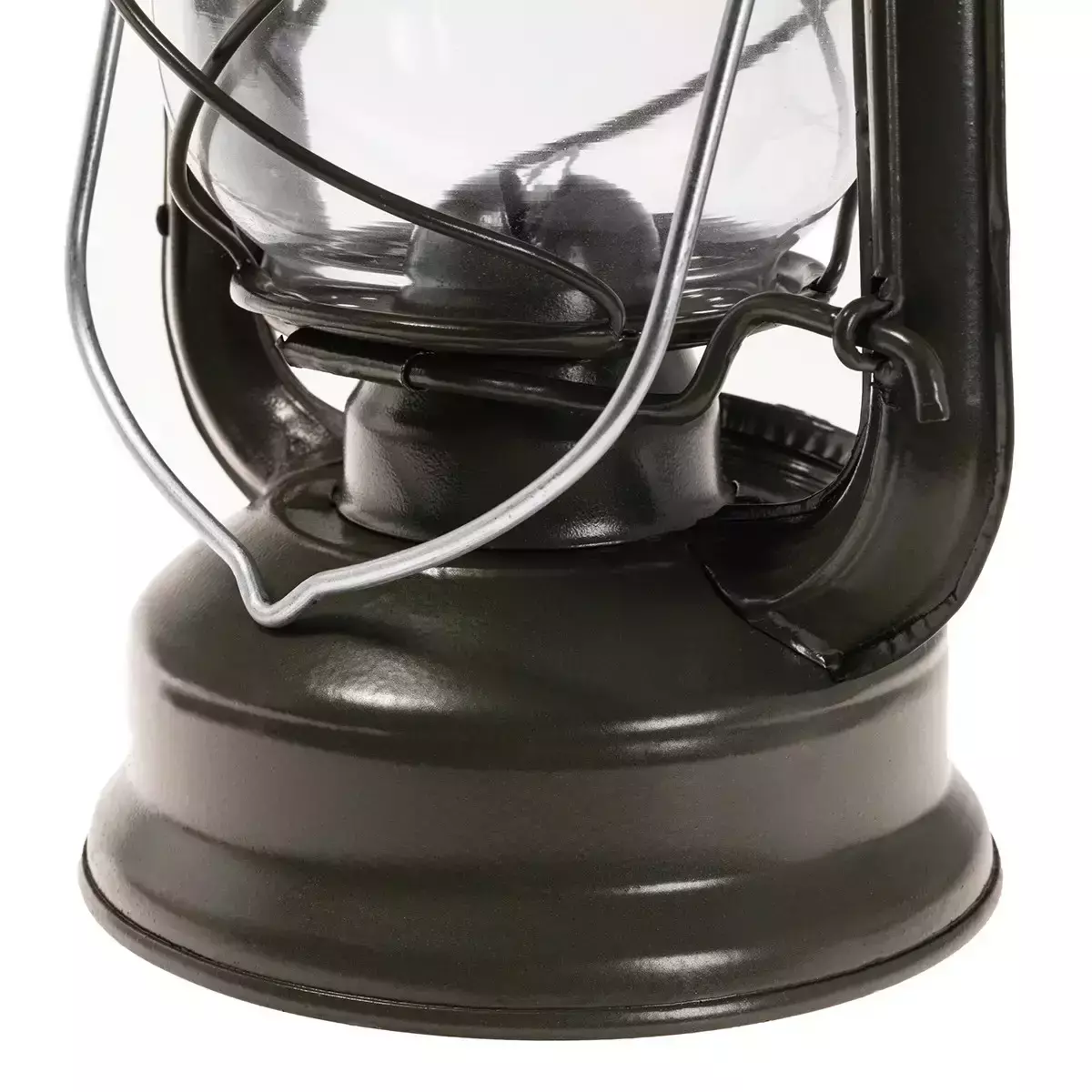 Джерелом світла є гніт, поміщений усередину скляного абажура.