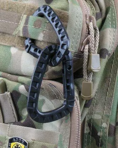 ключів, інструментів на рюкзак, розвантажувальну систему або пояс.