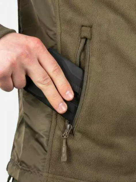 Основна частина куртки виготовлена з флісу, а плечі, рукави та