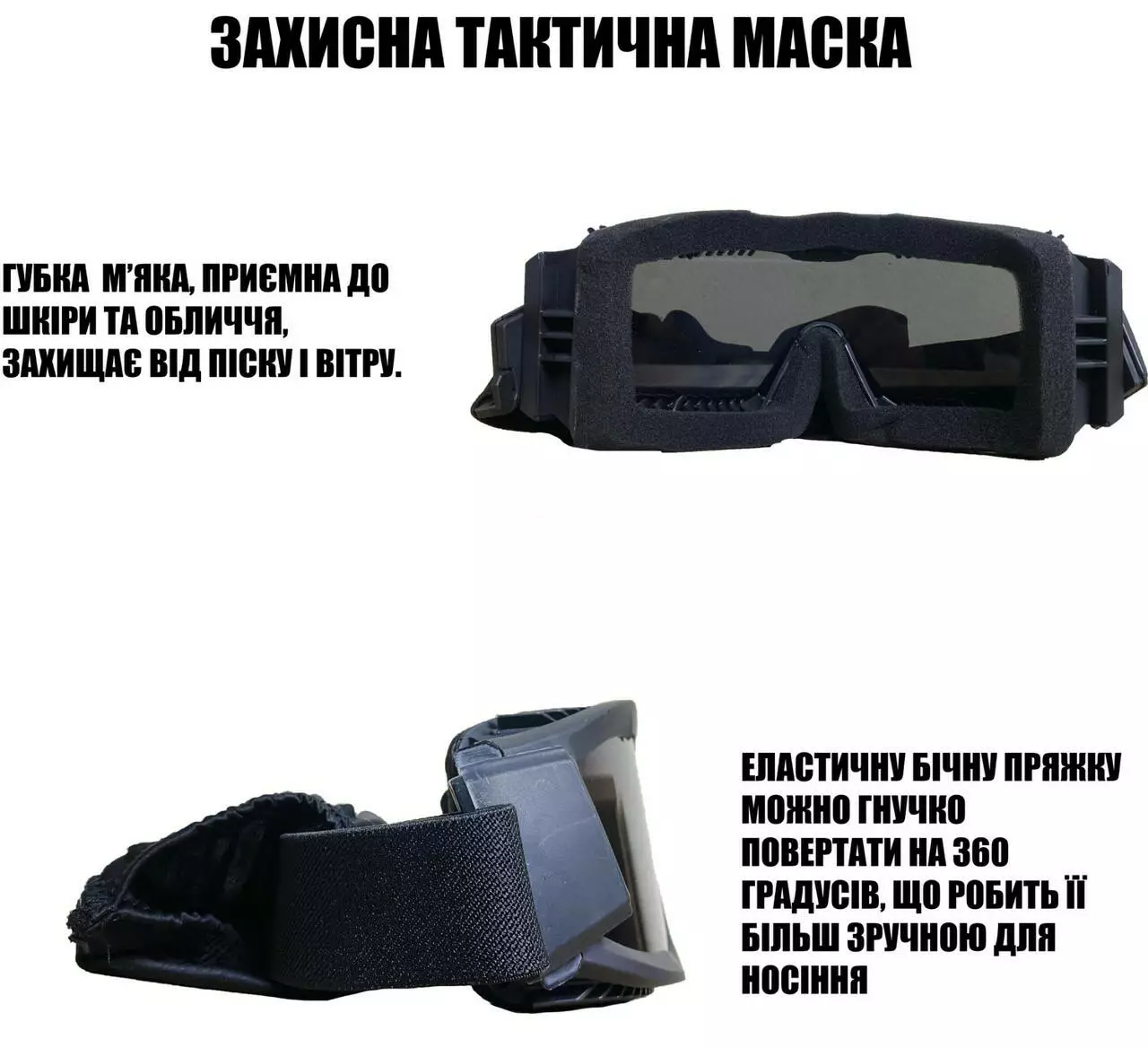мінометних обстрілах. Завдяки вигнутим лінзам маска мають широкий