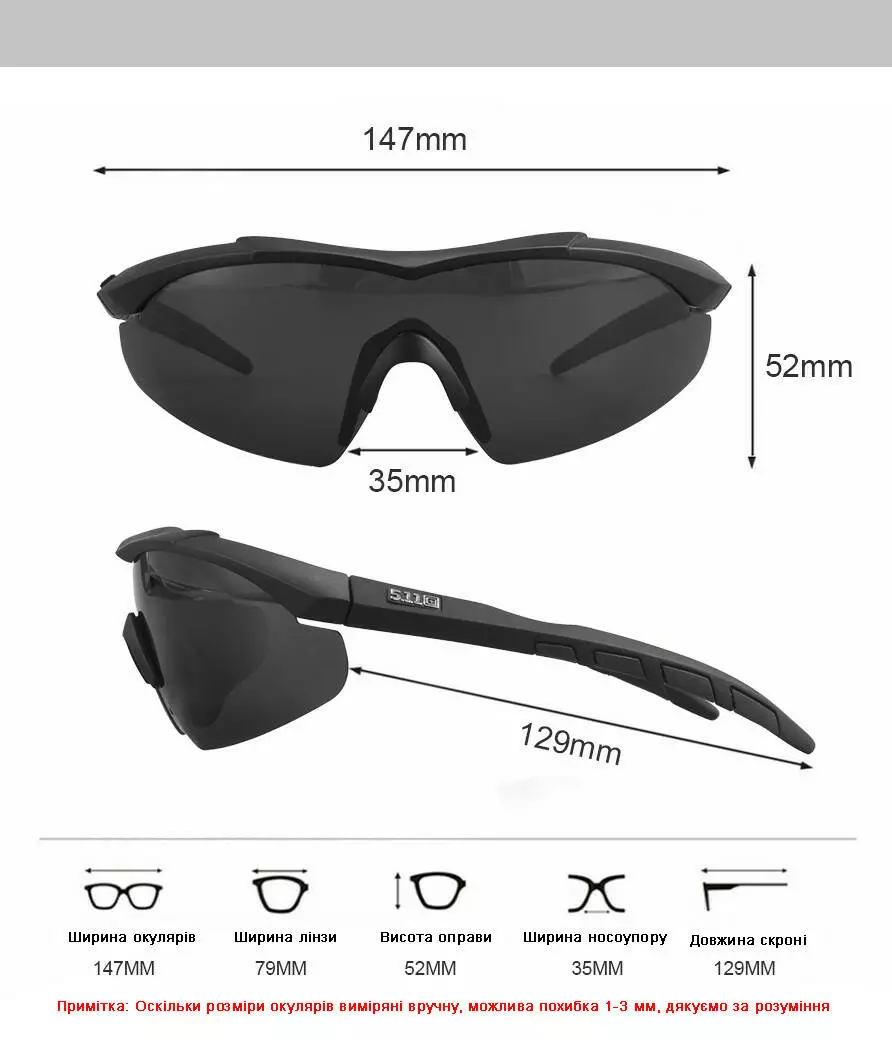 Тактичні окуляри 5.11 Aileron Shield, мають у своєму комплекті 3