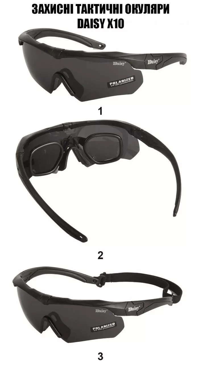 Тактичні окуляри Daisy X10, окуляри, чорні, з поляризацією