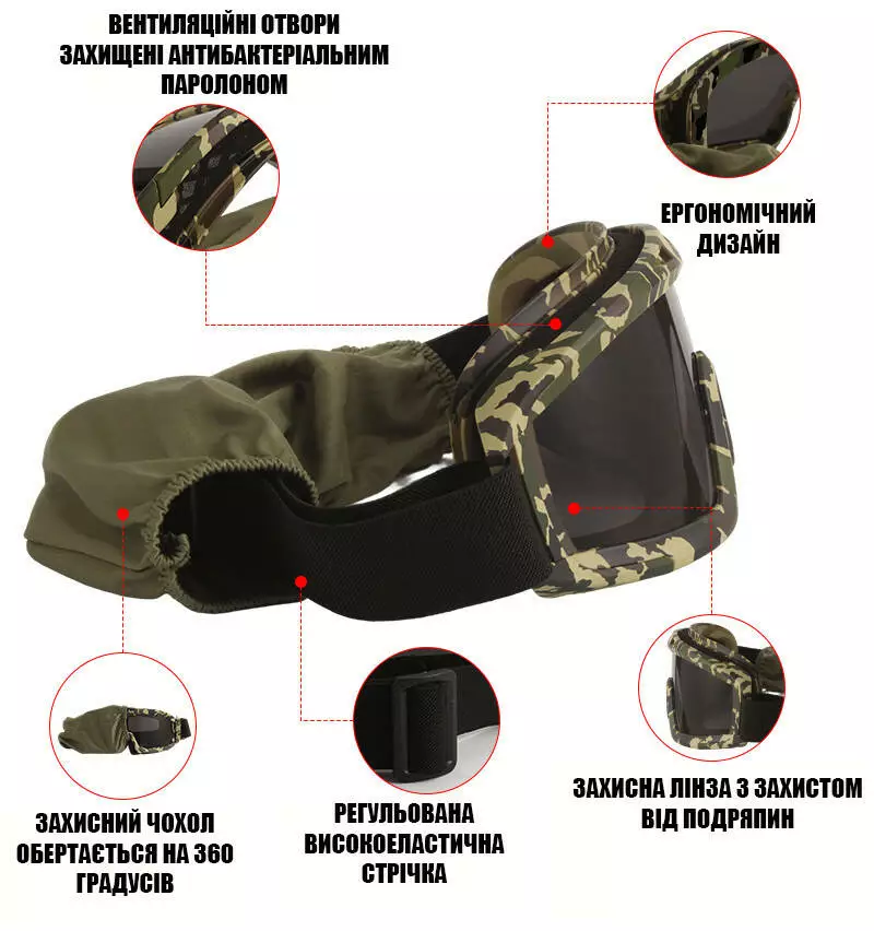 окуляри зі змінними лінзами (Камуфляж) Захисна тактична маска
