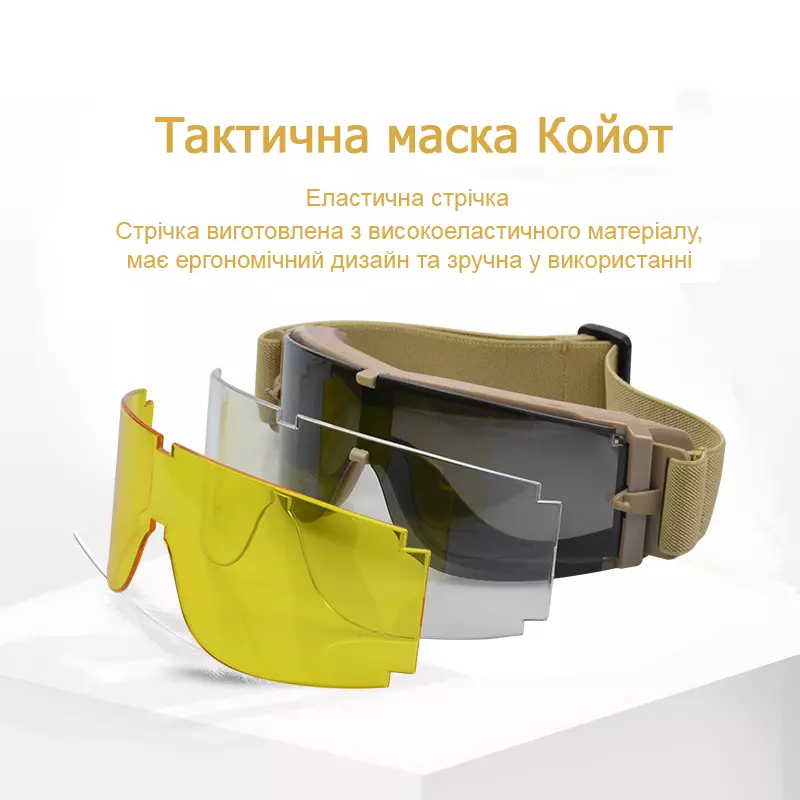- 3 змінні полікарбонатні лінзи (чорна, прозора, жовта)