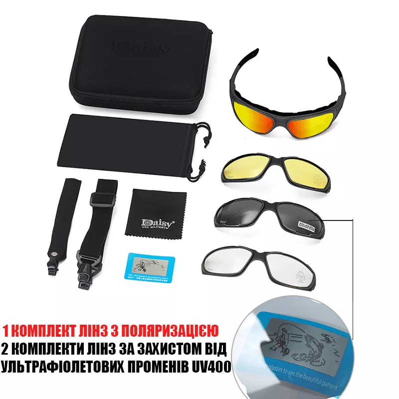 Захисні армійські тактичні окуляри з поляризацією Daisy С9 black+ 4