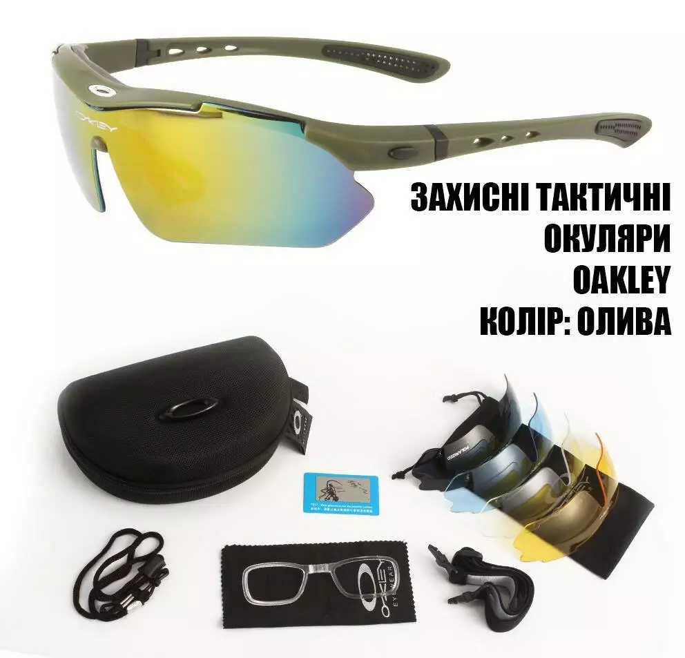 Захисні окуляри тактичні з поляризацією olive 5 лінз One siz+