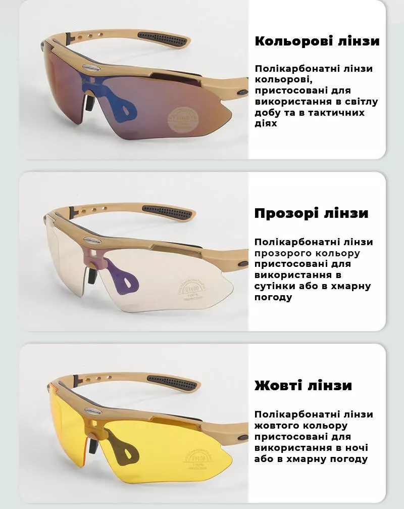 лінза з поляризацією 100%, всі лінзи в комплекті із захистом від