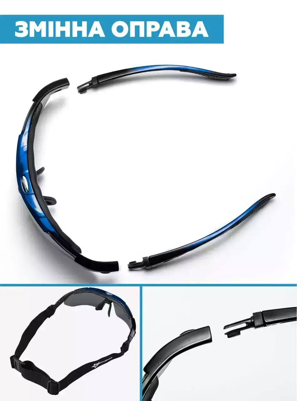 Захисні тактичні сонезахисні окуляри з поляризацією RockBros сині