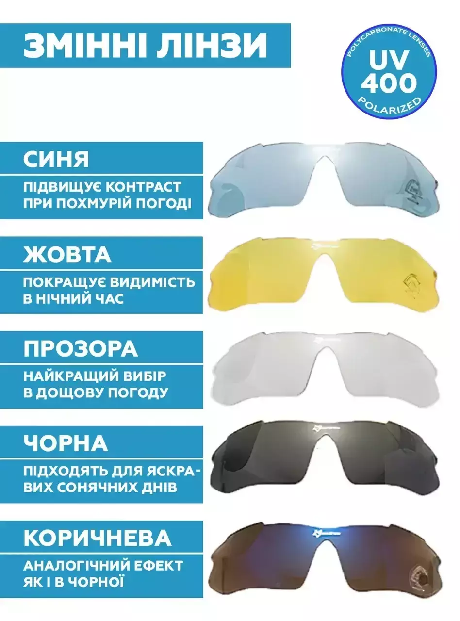 лінза з поляризацією 100%, всі лінзи в комплекті із захистом від