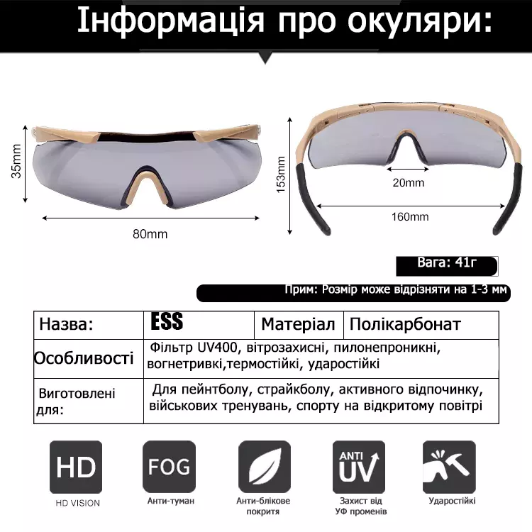 Усім шанувальникам тактичного спорядження пропонуємо окуляри ESS з