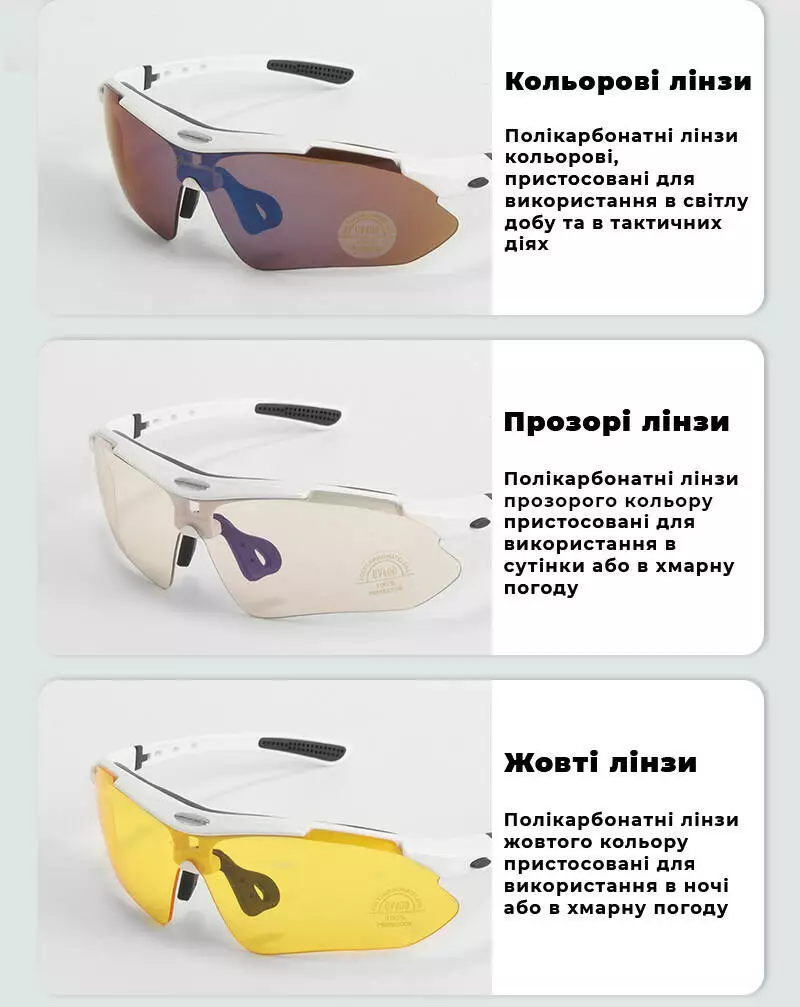 лінза з поляризацією 100%, всі лінзи в комплекті із захистом від